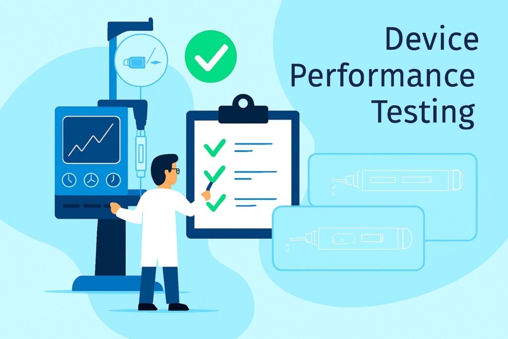 Device Performance Testing evaluates how a medical device performs under expected usage conditions. It verifies the mechanical, functional, and operational characteristics of the device to ensure reliability, precision, and consistency throughout its lifecycle.