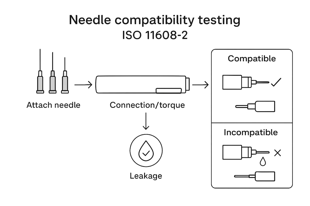 Needle Compatibility Testing ensures regulatory compliance by meeting ISO 11608, FDA, and EMA requirements, helping accelerate approvals. It reduces risks by identifying fit, leakage, or breakage issues early in development, while validating long-term safety and performance. This testing builds trust with regulators, healthcare providers, and end-users by ensuring reliable needle-device integration. With tailored protocols for Pen injectors, Needle Compatibility Testing delivers precision, compliance, and patient safety at every stage.